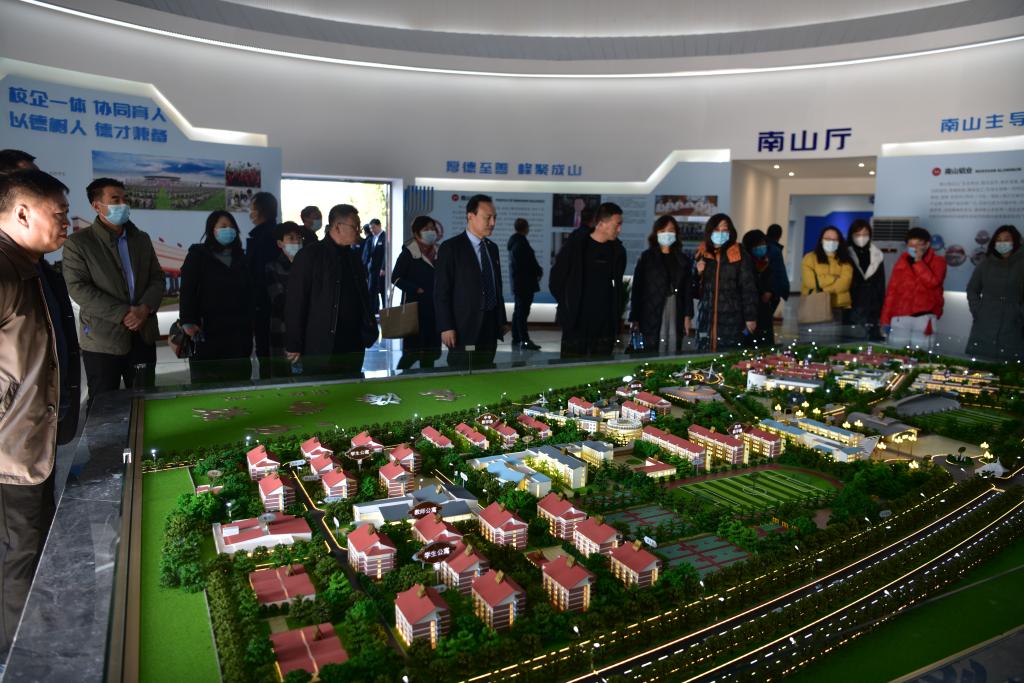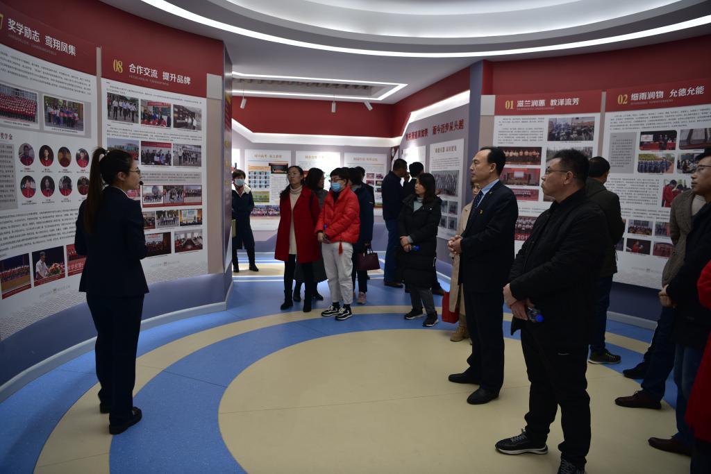 随后,考察团在赵校长的陪同下参观了圆球南山创业展厅、中专校史馆、红色文化长廊、传统文化区。